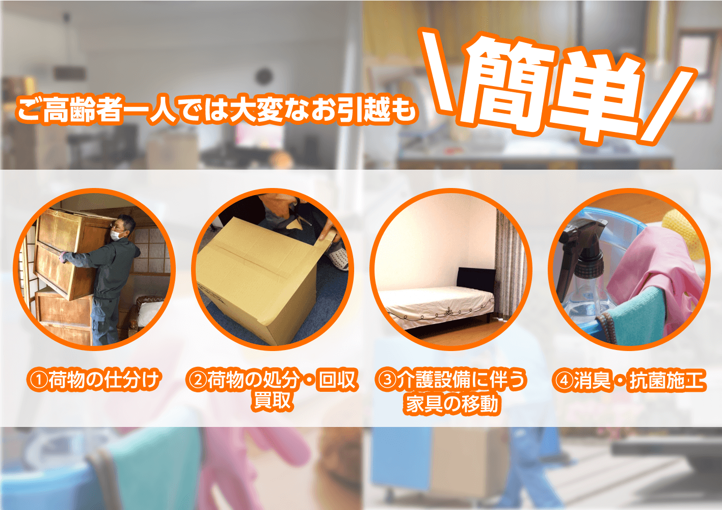高齢者の方との同居、老人ホームへの入居、あらゆる作業が一つになった