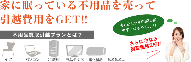 ご自宅で要らないものを買い取り、引越しの金額と差引して引越しを行うプランです。