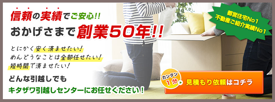 キタザワ引越センターは、都営住宅引越し件数NO.1の実績を誇っております。