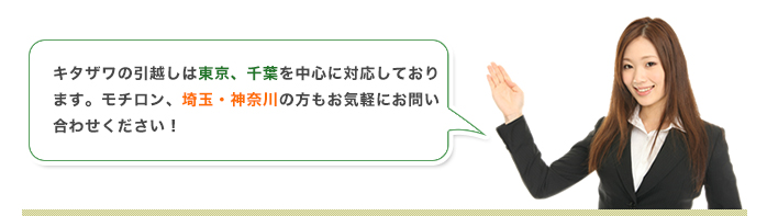 キタザワの引越しは東京23区に対応しております。モチロン、23区外、千葉・埼玉・神奈川の方もお気軽にお問い合わせください!