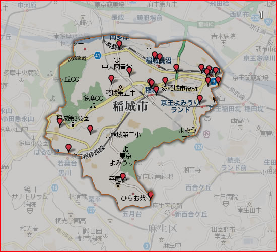 稲城市は、東京都の多摩地域南部にある市で、東京都心から西南に約25km。多摩川右岸に位置し、市内大丸にて取水した大丸用水が東部を潤し、東西方向に三沢川が横断しています。 多摩丘陵の北東部に位置し、現在は多くが住宅地となっているが、古くから谷戸地形を活かした農業が営まれており、森林も比較的多く残っています。人口は、約8万6,000人、面積は17.97km²となっており、日本住宅公団による1970年代以降の多摩ニュータウン建設や京王相模原線、小田急多摩線沿線の開発に伴い、多摩川流域の既存住宅地と合わせた人口が急増しました。東京都府中市、調布市、多摩市、神奈川県川崎市に隣接しており、首都圏の一大ベットタウンとして機能しており特にファミリー層に人気のエリアです。